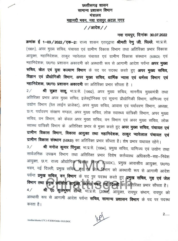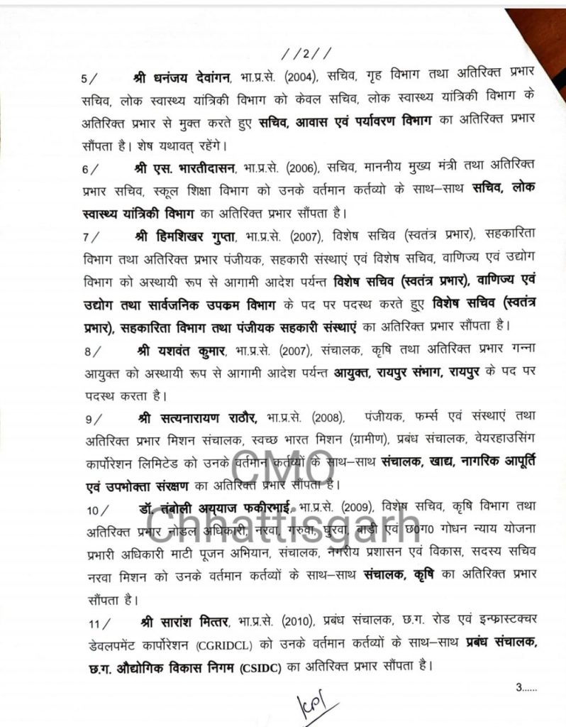 दो IAS अधिकारियों को सौंपा गया अतिरिक्त प्रभार, देखे पूरी लिस्ट