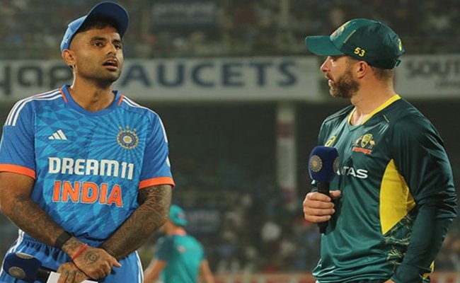नई दिल्ली। भारत और ऑस्ट्रेलिया के बीच पांच मैचों की टी20 सीरीज का चौथा मैच आज रायपुर के शहीद वीर नारायण इंटरनेशनल क्रिकेट स्टेडियम में खेला जा रहा है। ऑस्ट्रेलिया ने टॉस जीतकर