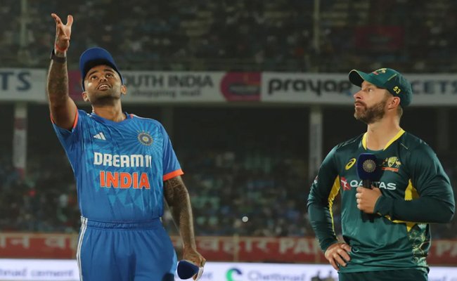गुवाहाटी। भारत और ऑस्ट्रेलिया के बीच टी-20 सीरीज का तीसरा मुकाबला गुवाहाटी के बारासपारा क्रिकेट स्टेडियम में खेला जाना है। इस मैच में ऑस्ट्रेलियाई कप्तान मैथ्यू वेड ने टॉस जी