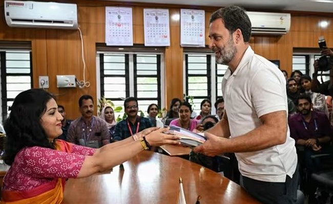 नई दिल्ली। केरल की वायनाड लोकसभा सीट से कांग्रेस नेता राहुल गांधी ने नामांकन पत्र दाखिल कर दिया है। अपना नामांकन दाखिल करने से पहले अपने निर्वाचन क्षेत्र केरल के वायनाड में ए