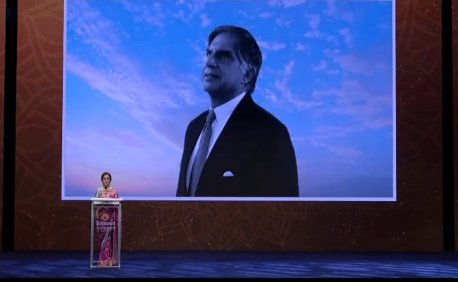 नई दिल्ली। रिलायंस ग्रुप के मुखिया मुकेश अंबानी और नीता अंबानी ने अपने परिवार के सदस्यों, रिलायंस के प्रबंधन टीम और हजारों कर्मचारियों के साथ मिलकर रतन टाटा के सम्मान में एक