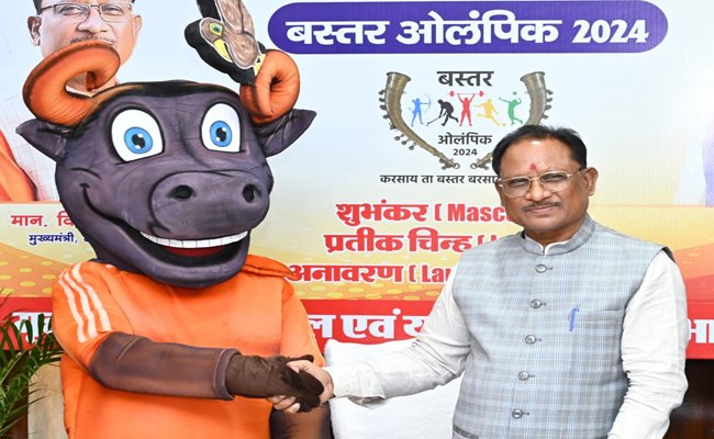 रायपुर। मुख्यमंत्री श्री विष्णु देव साय ने बस्तर ओलंपिक 2024 के लोगो (प्रतीक चिन्ह) और मस्कट (शुभंकर) का किया अनावरण।