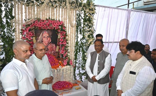 दिवंगत स्व. श्रीमती बिमला देवी शर्मा के छायाचित्र पर पुष्प अर्पित कर दी श्रद्धांजलि