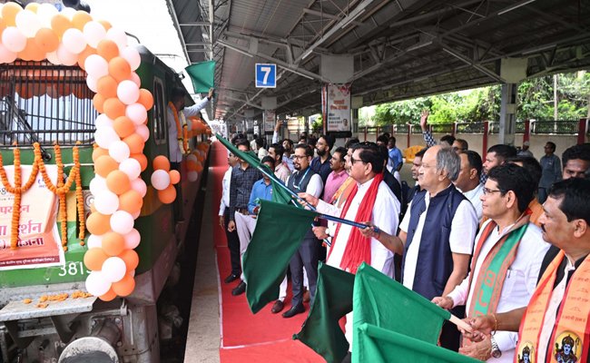 राजस्व मंत्री श्री वर्मा और खाद्य मंत्री श्री बघेल ने ट्रेन को हरी झंडी दिखाकर किया रवाना