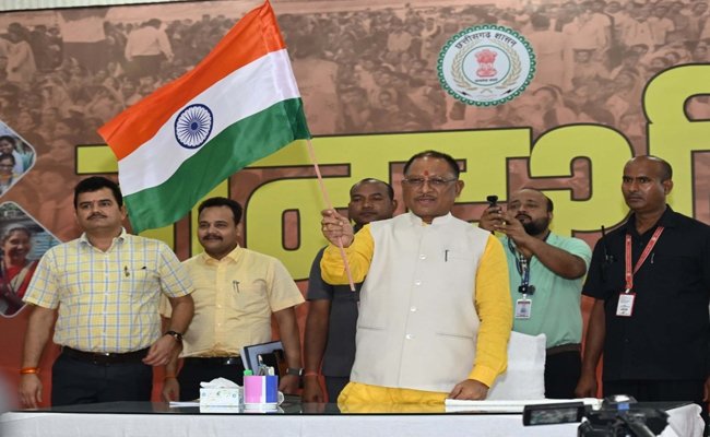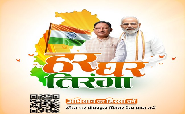 रायपुर। प्रधानमंत्री श्री नरेंद्र मोदी के आह्वान पर पूरा देश "हर घर तिरंगा" अभियान में बढ़-चढ़ कर हिस्सा ले रहा है। मुख्यमंत्री श्री विष्णु देव साय ने नागरिकों से इस अभियान मे