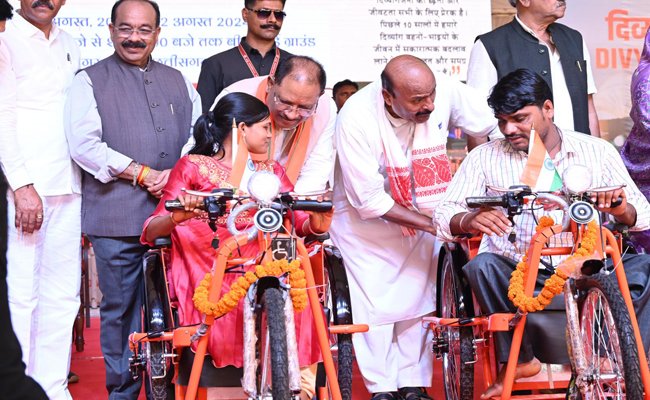 रायपुर। राजधानी में आयोजित दिव्य कला मेले में मुख्य अतिथि केन्द्रीय सामाजिक न्याय एवं आधिकारिता मंत्री श्री डॉ. वीरेन्द्र कुमार, मुख्यमंत्री श्री विष्णु देव साय ने भारत सरक