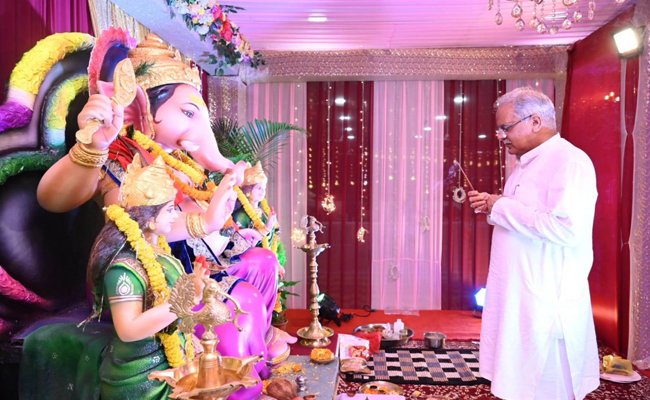 रायपुर। मुख्यमंत्री श्री भूपेश बघेल ने आज गणेश चतुर्थी के अवसर पर भिलाई-3 स्थित अपने निवास में भगवान गणेश जी की प्रतिमा की स्थापना की। उन्होंने भगवान गणेश जी की विधि-विधान-पूर
