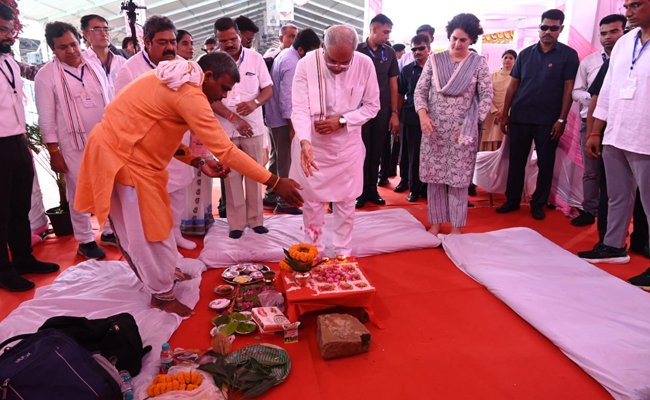 जयंती स्टेडियम में विभागीय प्रदर्शनी का मुख्यमंत्री श्री भूपेश बघेल और श्रीमती प्रियंका गांधी ने किया अवलोकन