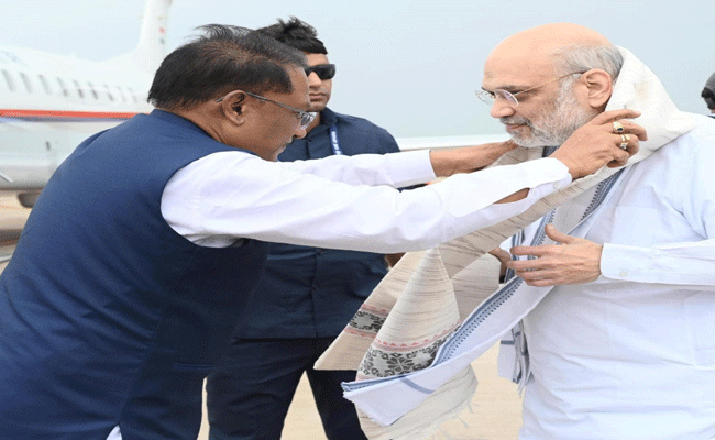 रायपुर। केंद्रीय गृह मंत्री श्री अमित शाह के छत्तीसगढ़ आगमन पर आज स्वामी विवेकानंद विमानतल रायपुर में मुख्यमंत्री श्री विष्णु देव साय ने पुष्पगुच्छ भेंट कर उनका आत्मीय स्व