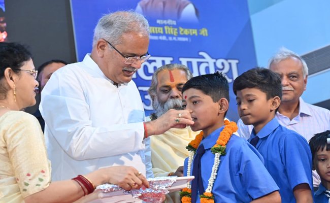 शाला प्रवेश उत्सव में मुख्यमंत्री ने नव प्रवेशी बच्चों को खिलाई मिठाई, तिलक लगाकर किया स्