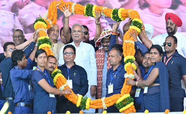 रायपुर। मुख्यमंत्री श्री भूपेश बघेल ने राजधानी रायपुर के साईंस कॉलेज मैदान में पटेल, कोटवार और होमगार्ड के आभार सम्मेलन और गौठान समितियों के पदाधिकारियों के प्रशिक्षण सह-सम