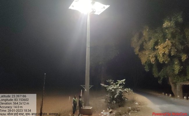 मुख्यमंत्री की पहल पर सूरजपुर जिले के हाथी प्रभावित क्षेत्रों में लगा 33 नग सोलर हाईमास्ट लाइट