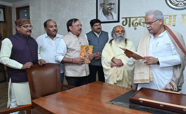 रायपुर। मुख्यमंत्री श्री भूपेश बघेल से आज यहाँ उनके निवास कार्यालय में छत्तीसगढ़ राज्य गौसेवा आयोग के अध्यक्ष महंत रामसुंदर दास के प्रतिनिधित्व में श्री नारायणी धाम सेवा सम