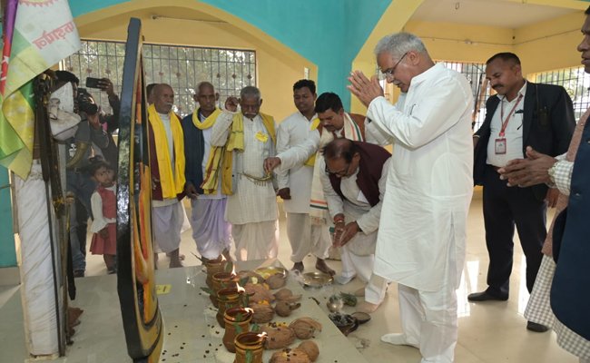 रायपुर। मुख्यमंत्री श्री भूपेश बघेल ने रंजना में भेंट-मुलाकात कार्यक्रम के दौरान गोंड समाज के देवता बड