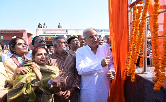 रायपुर। मुख्यमंत्री श्री भूपेश बघेल ने ग्राम घुमका में रानी अवंती बाई की प्रतिमा का अनावरण किय