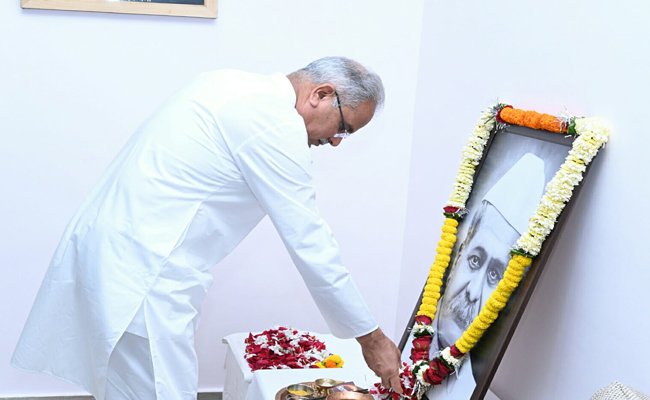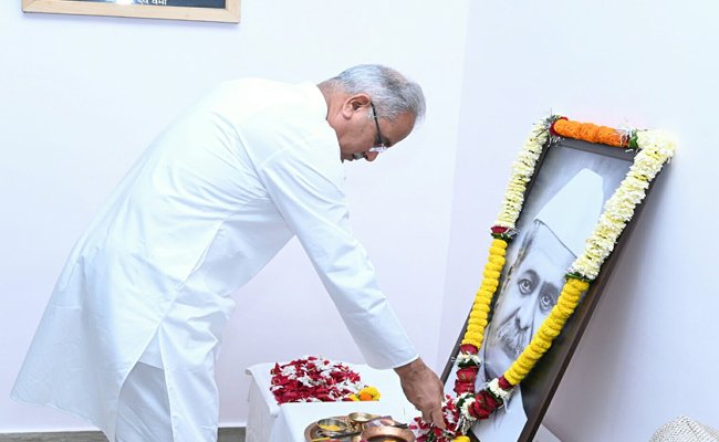 रायपुर। मुख्यमंत्री श्री भूपेश बघेल ने आज मुख्यमंत्री निवास कार्यालय में स्वर्गीय श्री वामनराव लाखे की पुण्यतिथि पर उनके छायाचित्र पर पुष्प अर्पित कर उन्हें नमन किया है। श