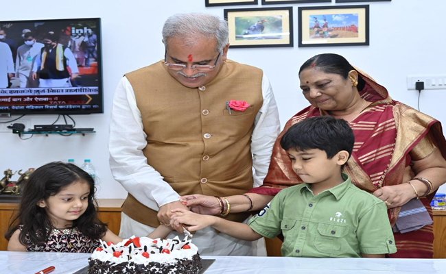 रायपुर। मुख्यमंत्री श्री भूपेश बघेल ने अपने जन्मदिन के अवसर पर परिवार संग केक काटा।