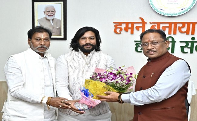 रायपुर। मुख्यमंत्री श्री विष्णु देव साय से आज उनके निवास कार्यालय में आरंग विधायक गुरु खुशवंत साहेब ने सौजन्य मुलाकात की। मुख्यमंत्री श्री साय ने गुरु खुशवंत को आज उनके जन्