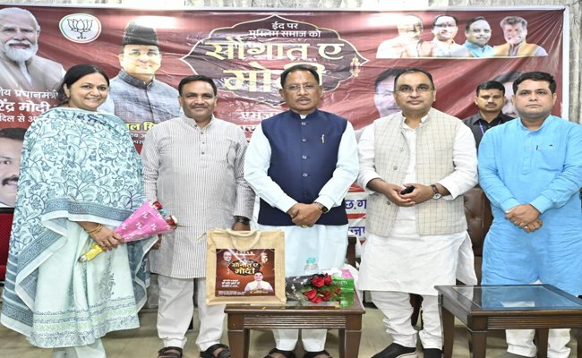 रायपुर। मुख्यमंत्री श्री विष्णु देव साय ने मुख्यमंत्री निवास में आयोजित कार्यक्रम में मुस्लिम समाज की जरूरतमंद बहनों को सौगातें भेंट कर सामाजिक सौहार्द का संदेश दिया।