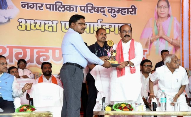 रायपुर। उप मुख्यमंत्री तथा नगरीय प्रशासन एवं विकास मंत्री श्री अरुण साव के मुख्य आतिथ्य में आज कुम्हारी नगर पालिका के नवनिर्वाचित अध्यक्ष एवं पार्षदों का शपथ ग्रहण संपन्न ह