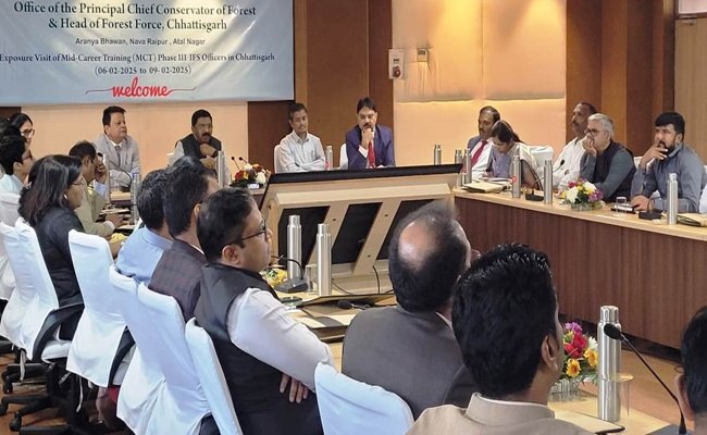 रायपुर। भारतीय वन सेवा के 32 अधिकारियों का एक दल मध्य कैरियर प्रशिक्षण फेज-3 के तहत छत्तीसगढ़ के वन प्रबंधन मॉडल का अध्ययन करने के लिए रायपुर पहुंचा। इंदिरा गांधी राष्ट्रीय वन अ