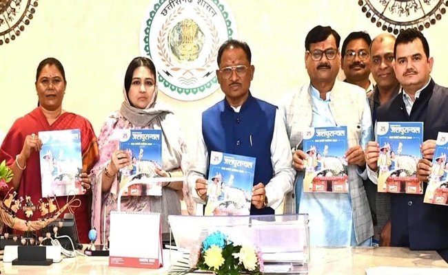 रायपुर। मुख्यमंत्री श्री विष्णुदेव साय ने छत्तीसगढ़ विधानसभा स्थित अपने कार्यालय कक्ष में दैनिक जशपुरांचल की रजत जयंती स्मारिका का विमोचन किया। मुख्यमंत्री श्री साय ने दैन