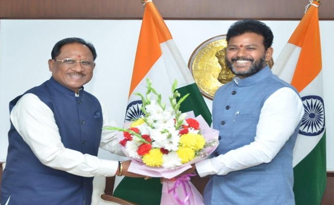 रायपुर। मुख्यमंत्री श्री विष्णुदेव साय ने आज नई दिल्ली स्थित राजीव गांधी भवन में केंद्रीय नागरिक उड्डयन मंत्री श्री किंजरापु राममोहन नायडू से सौजन्य मुलाक़ात की। बैठक में