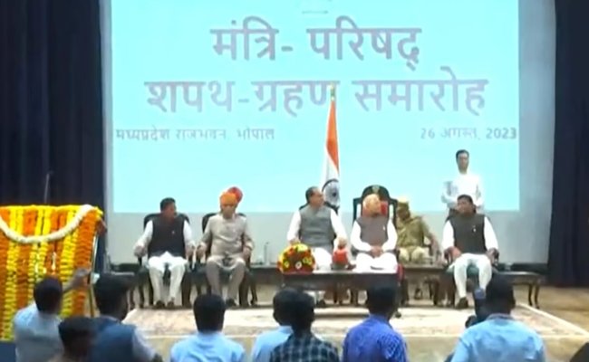 भोपाल। मध्य प्रदेश में आज यानी 26 अगस्त को शिवराज मंत्रिमंडल का विस्तार हुआ जिसमें तीन नए चेहरे बीजेपी नेता राजेंद्र शुक्ल, राहुल लोधी और गौरीशंकर बिसेन ने मंत्री पद की शपथ ली।