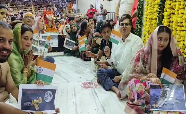 उज्जैन। चंद्रयान-3 की सफलता के लिए उज्जैन में भी अनुष्ठान-अभिषेक किए जा रहे हैं। यहां श्री महाकालेश्वर मंदिर में भस्म आरती के दौरान भगवान का विशेष भस्म आरती कर बाबा महाकाल से क