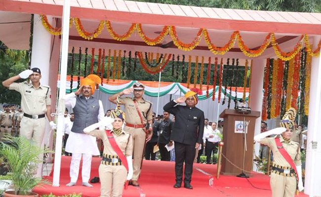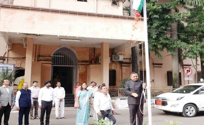 इन्दौर। स्वतंत्रता दिवस के अवसर पर संभागायुक्त कार्यालय में संभागायुक्त श्री मालसिंह ने ध्वजारोहण किया। इस अवसर पर अपर आयुक्त श्रीमती जमुना भिड़े तथा उपायुक्त सुश्री जानक