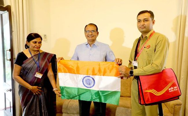 भोपाल। मुख्यमंत्री श्री शिवराज सिंह चौहान को "हर घर तिरंगा" अभियान अंतर्गत डाक परिमंडल मध्यप्रदेश के भोपाल संभाग के अधिकारियों ने मुख्यमंत्री निवास में भेंट कर तिरंगा भेंट