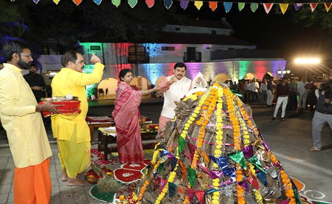 मुख्यमंत्री डॉ. यादव ने सपत्नीक पूजा-अर्चना कर किया होलिका दहन