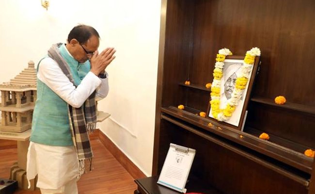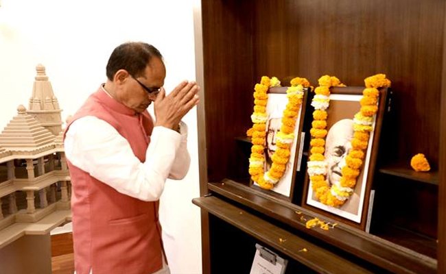 भोपाल। मुख्यमंत्री श्री शिवराज सिंह चौहान ने आज सुबह मुख्यमंत्री निवास सभाकक्ष में राष्ट्रपिता महात्मा गांधी तथा ख्याति प्राप्त कवि, लेखक और पत्रकार, पद्मभूषण श्रद्धेय मा