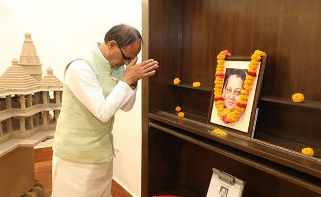 भोपाल। मुख्यमंत्री श्री शिवराज सिंह चौहान ने राजमाता श्रीमती विजयाराजे सिंधिया की 22वीं पुण्य-तिथि पर आज मुख्यमंत्री निवास सभाकक्ष में उनकी तस्वीर पर माल्यार्पण कर नमन किया