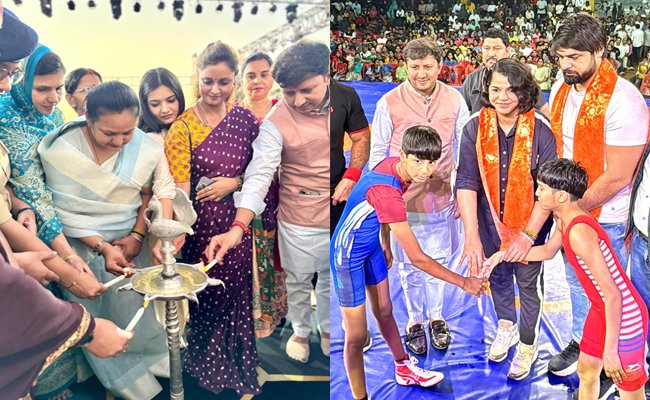 मुख्यमंत्री मोहन यादव और नगरीय प्रशासन मंत्री कैलाश विजयवर्गीय के साथ ओलंपिक कांस्य पदक विजेता साक्षी मालिक रही मुख्य रूप से मौजूद