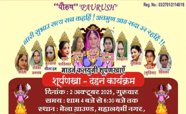 इंदौर। इंदौर पर दशहरा के मौके पर शूर्पनखा दहन कार्यक्रम रखा गया था। इस दौरान सोनम रघुवंशी को शूर्पनखा दिखाया जाना था। सिर्फ सोनम ही नहीं बल्कि 11 अन्य उन महिलाओं के पुतले लगाने