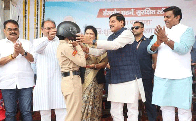 मुख्यमंत्री डॉ. यादव ने युवाओं को हेलमेट पहनाकर जीवन रक्षा का दिया संदेश