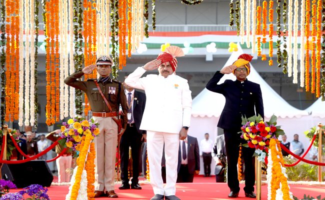इंदौर। मध्यप्रदेश में आज 76वां गणतंत्र दिवस पूरे जोश और उल्लास के साथ मनाया गया। प्रदेश के मुख्यमंत्री डॉ. मोहन यादव ने इंदौर के नेहरू स्टेडियम में सुबह 9 बजे तिरंगा फहराया और र