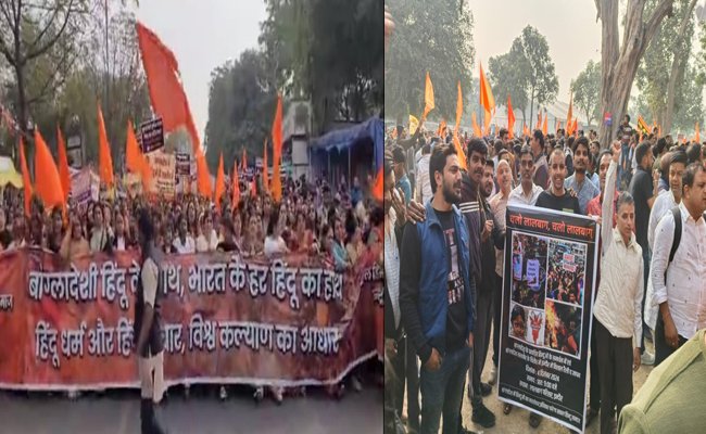 इंदौर। बांग्लादेश में लगातार हो रहे हिन्दुओं पर अत्याचार के विरोध में संघ के आह्वान पर आज शहर एकजुट नजर आया। शहर की सड़कों पर लाखों हिंदूओं का सैलाब उमड़ा। लालबाग, जहां से जनआ