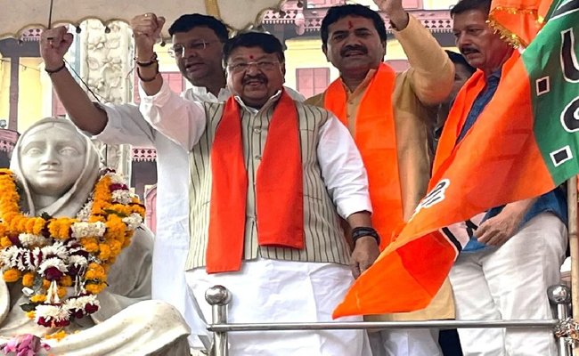 इंदौर। इंदौर के राजवाडा में मंत्री कैलाश विजयवर्गीय ने महाराष्ट्र विधानसभा चुनाव में महायुति की प्रचंड जीत का अहिल्या प्रतिमा पर माल्यार्पण कर जश्न मनाया। मंत्री विजयवर्ग