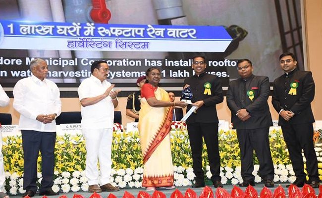 राष्ट्रपति श्रीमती द्रोपदी मुर्मु ने इंदौर को राष्ट्रीय जल पुरस्कार प्रदान किया