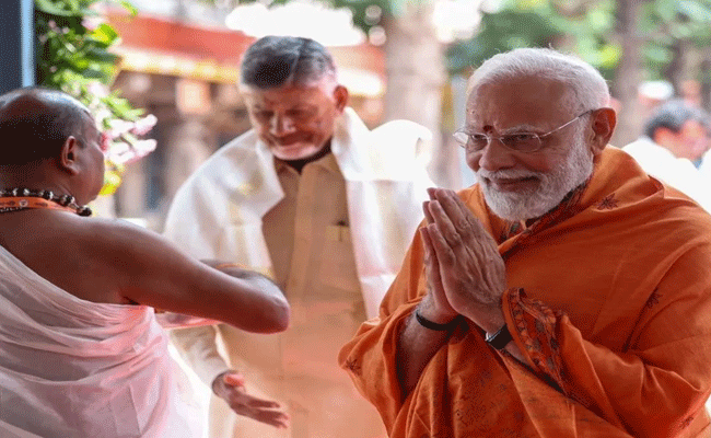 नई दिल्ली। प्रधानमंत्री नरेंद्र मोदी गुरुवार को आंध्र प्रदेश दौरे पर हैं। प्रधानमंत्री ने नंदयाल जिले में श्रीशैलम स्थित श्री भ्रमरम्बा मल्लिकार्जुन स्वामी वरला देवस्था