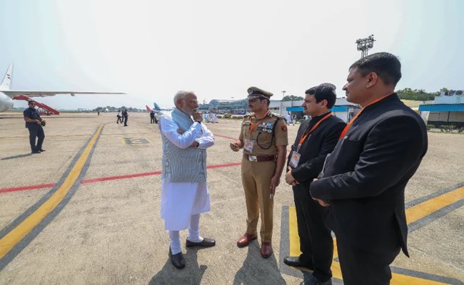 वाराणसी। प्रधानमंत्री नरेंद्र मोदी शुक्रवार सुबह 10 बजकर 7 मिनट पर वाराणसी पहुंचे हैं। पीएम मोदी आज राजातालाब क्षेत्र के मेंहदीगंज में आयोजित जनसभा को संबोधित करेंगे और साथ ह