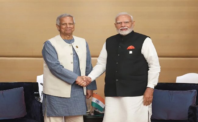 नई दिल्ली। प्रधानमंत्री नरेंद्र मोदी और बांग्लादेश की अंतरिम सरकार के प्रमुख मोहम्मद यूनुस की शुक्रवार को थाईलैंड की राजधानी बैंकॉक में मुलाकात हुई। शेख हसीना की सरकार के स