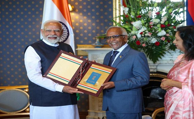 नई दिल्ली। प्रधानमंत्री नरेंद्र मोदी दो दिनों के मॉरीशस दौरे पर पहुंचे। मॉरीशस ने देश के सर्वोच्च सम्मान ग्रैंड कमांडर ऑफ द ऑर्डर ऑफ द स्टार और की ऑफ द इंडियन ओशन से पीएम मोदी