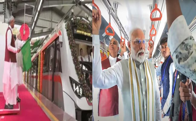 अहमदाबाद। प्रधानमंत्री नरेंद्र मोदी ने सोमवार को अहमदाबाद मेट्रो रेल एक्सटेंशन के दूसरे चरण का उद्घाटन किया। मेट्रो रेल नेटवर्क का दूसरा चरण गुजरात मेट्रो रेल कॉर्पोरेशन (G