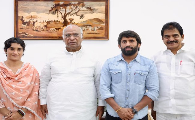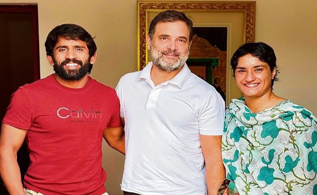नई दिल्ली। हरियाणा विधानसभा चुनाव से पहले कांग्रेस पार्टी ने राज्य के दो प्रमुख पहलवान, विनेश फोगाट और बजरंग पूनिया, को अपने खेमे में शामिल कर लिया है। इस निर्णय से पहले दोनों