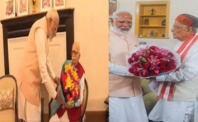 नई दिल्ली। राष्ट्रीय जनतांत्रिक गठबंधन की बैठक में संसदीय दल का नेता चुने जाने के बाद प्रधानमंत्री नरेंद्र मोदी भारत रत्न लालकृष्ण आडवाणी और मुरली मनोहर जोशी से मिलने उनके