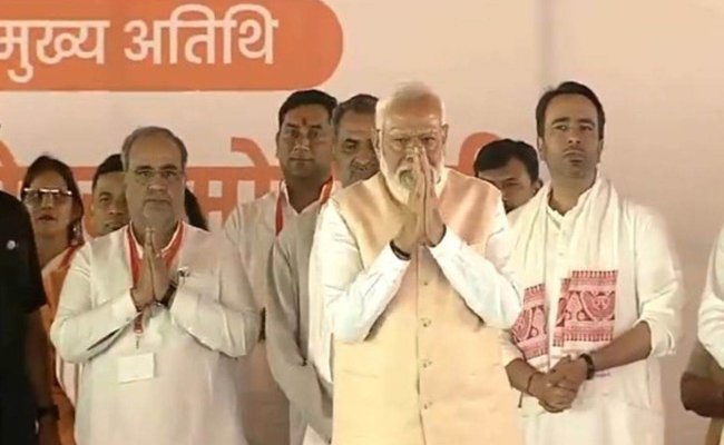 नई दिल्ली। प्रधानमंत्री नरेंद्र मोदी आज यानी गुरुवार को बिहार के जमुई में जनसभा को संबोधित किया। इस दौरान पीएम मोदी के साथ बिहार के सीएम नीतीश कुमार और लोजपा के अध्यक्ष चिराग