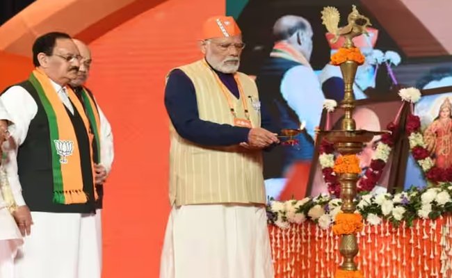 नई दिल्ली। भाजपा का राष्ट्रीय अधिवेशन नई दिल्ली के भारत मंडपम में शुरू हो गया है। पीएम मोदी और जेपी नड्डा ने दीप प्रज्वलित कर अधिवेशन की शुरुआत की। इस मौके पर जेपी नड्डा ने दो